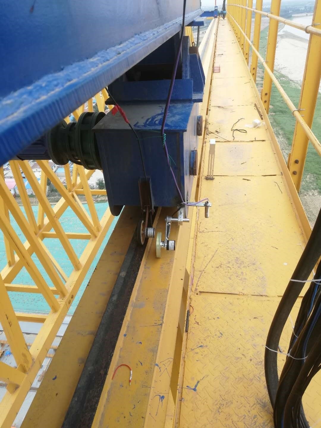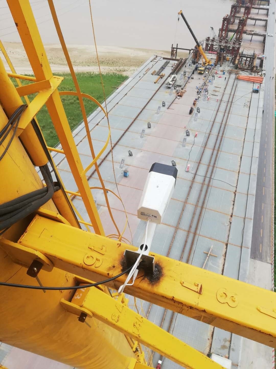 3. 龍門吊高度53米,跨度32米,為齊魯黃河大橋施工主要裝備,設(shè)備架設(shè)在黃河橋上,設(shè)備最高處距離黃河水面近80米,設(shè)備安全運行,對項目進度起到至關(guān)重要的作用,鄭州愷德爾遠程監(jiān)控系統(tǒng)的安裝,為該設(shè)備正常運行提供了可靠保障。